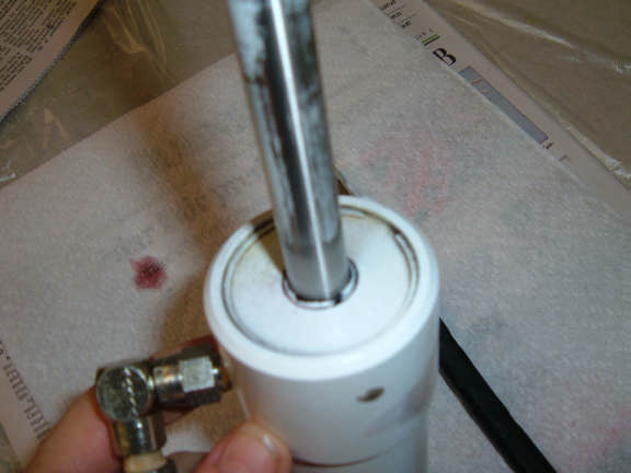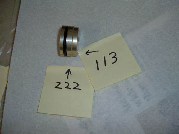 I installed new o-rings on the piston (AS568-221), end seal (AS568-222), and shaft seal (AS568-113). Note, the dash number is the o-ring size. There are two rubber "scrappers" on the piston, one on each side of the o-ring. These scrappers were not damaged, so they were reused.