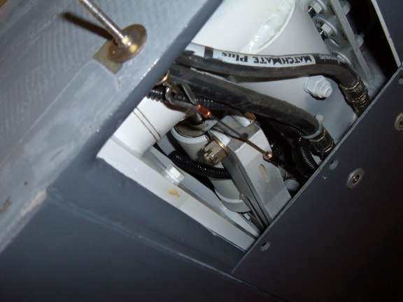 The Straight fitting goes to my overflow bottle. Normally this fitting location is a small vent fitting used for checking/servicing the hydraulic fluid. My Overflow bottle is just a small container that also has a vent line installed. Because of the location of my pump, its hard to check/service the hydraulic fluid. The overflow bottle will be mounted so it can be serviced from the front access hatch. The vent line will be routed overboard.