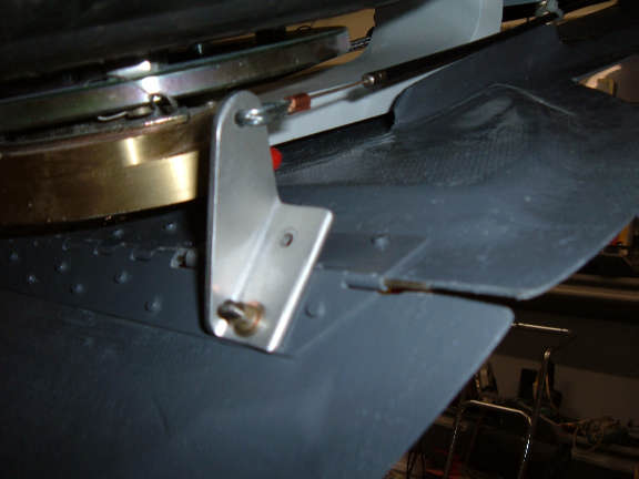 In the photo, you can see the temporary pull arm on the lower door (grasscutter door). The real arm will be made once the correct geometry is verified. As it worked out, this arm has the correct geometry, and the opening and closing of the door is 100% perfect. I made a template of the arm and will probably make the real arm out of .032 stainless. I also have the correct clamps and stainless cable on order.