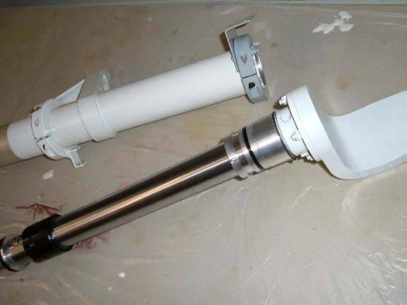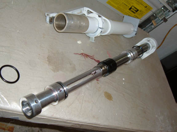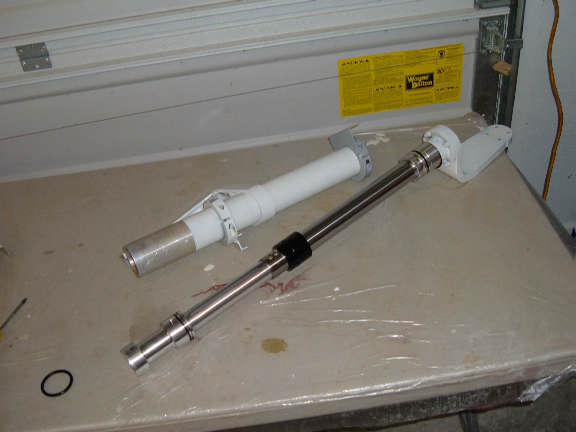 While disassembling the wheel axel assembly to start fixing the two problems, I noticed the retaining ring on the bottom of the gear leg was not fully in its groove. At this point I decided to disassemble the entire strut and see if I could explain why the retainer wasn't in the groove, plus, I had a couple other questions I wanted to answer.