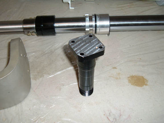 I originally machined the fork half to put a small angle on it. This was meant to correct for a wheel well alignment problem that didn't exist.. So, this should correct the correction!!!