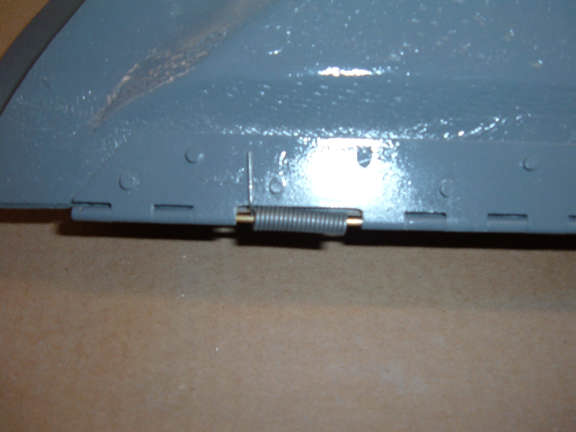 While rigging the lower "Grasscutter" doors on the landing gear, I discovered I mounted the left grasscutter on the right gear door. Not a big problem, just pull out the hinge pin and swap the doors.